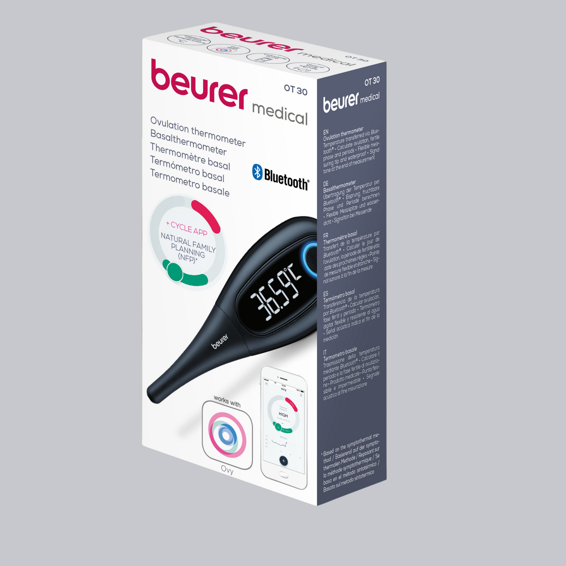 מד-חום ביוץ של חברת ביורר, המאפשר מדידה של חום הגוף והעברת הנתונים באופן אלחוטי לאפליקציה למעקב אחרי המחזור.